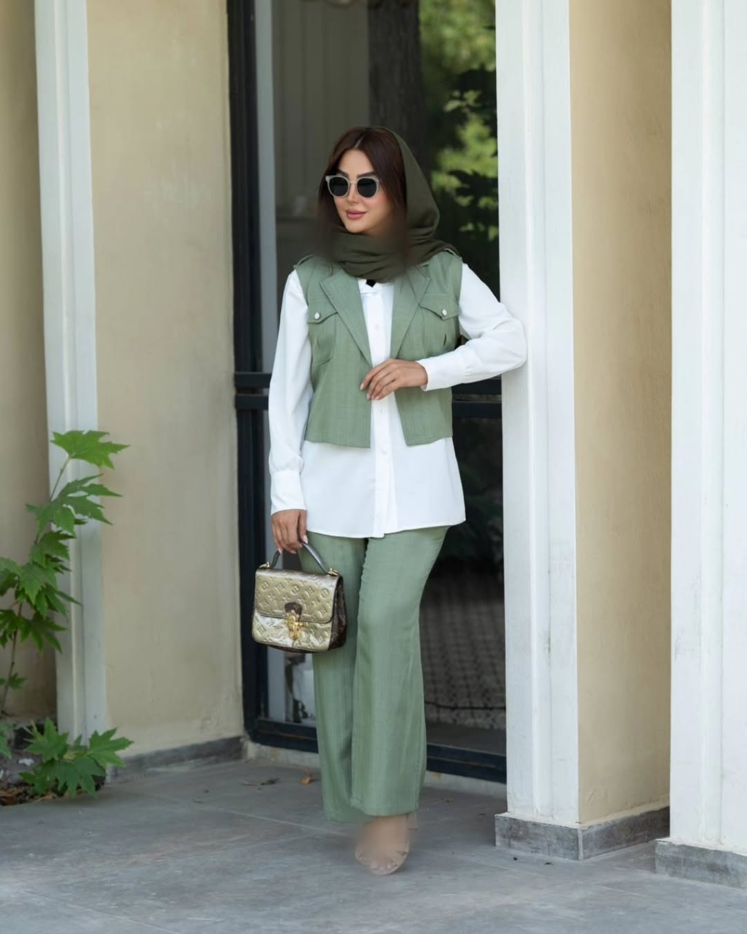 ق/ی/م/ت ارس/ا/ل رای/گ/ان کالکشن تابستانی ۱۴۰۴ جنس پارچه : صوفیا ژاکارد سیمی مدل :ارمغان جلیقه شلوار شومیز ۳ تیکه سایزبندی :۲ سایز مناسب 36 تا 48 رنگبندی :طبق ژورنال رنگ قد کار: جلیقه 50 شومیز 75 شلوار 100