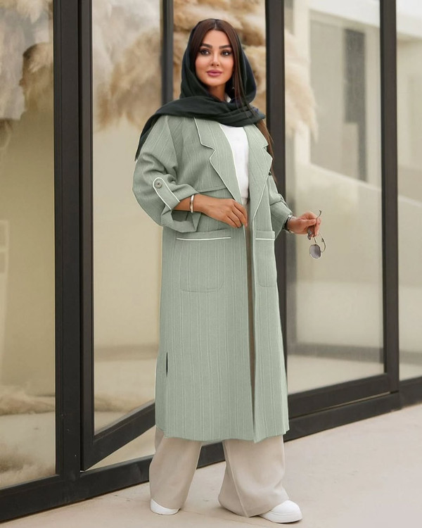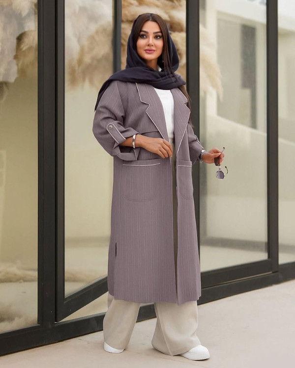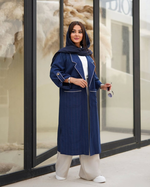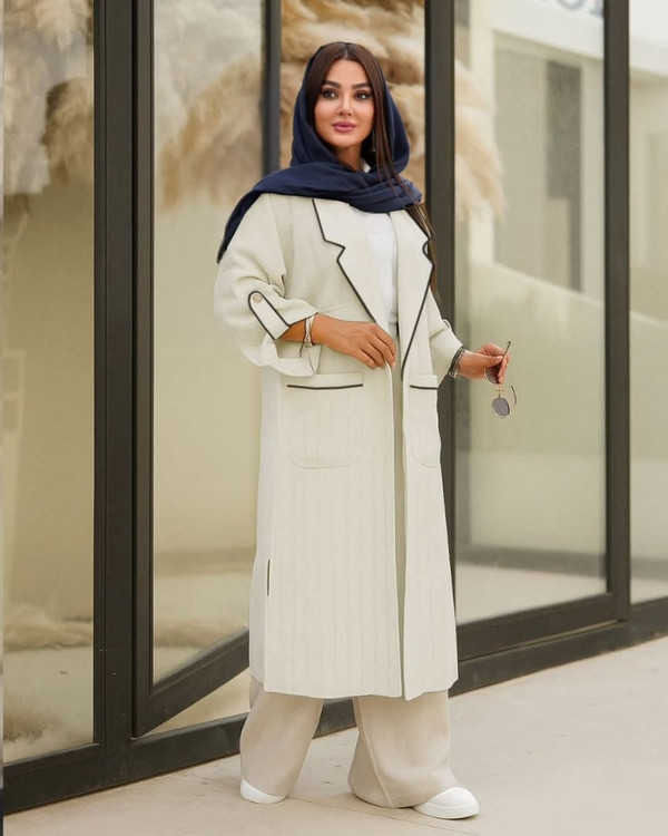 ق/ی/م/ت ار/س/ا/ل رای/گ/ان یقه انگلیسی دو جیب مدل هستی ژاکارد میله ای فوق العاده خنک کد 760 سایزبندی 1 تا 48 و سایز 2 تا 52 سه رنگ (مشکی،کرم،موکایی،سبز،آبی) قد تا پایین کار 110 قد آستین از کنار یقه تا مچ 66 قد چاک بغل 30