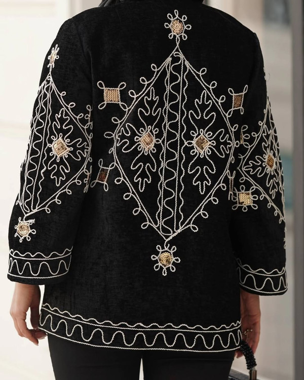 ق/ی/م/ت: 1450 ار/س/ا/ل ر/ا/ی/گ/ان جنس پارچه: مخمل شانل سرمه دوزی و پولک دوزی جلو کار تمام آستر کشی شده مدل عسل سایزبندی: ۲ سایز مناسب ۴۶ رنگبندی: دو رنگ قد ۷۰