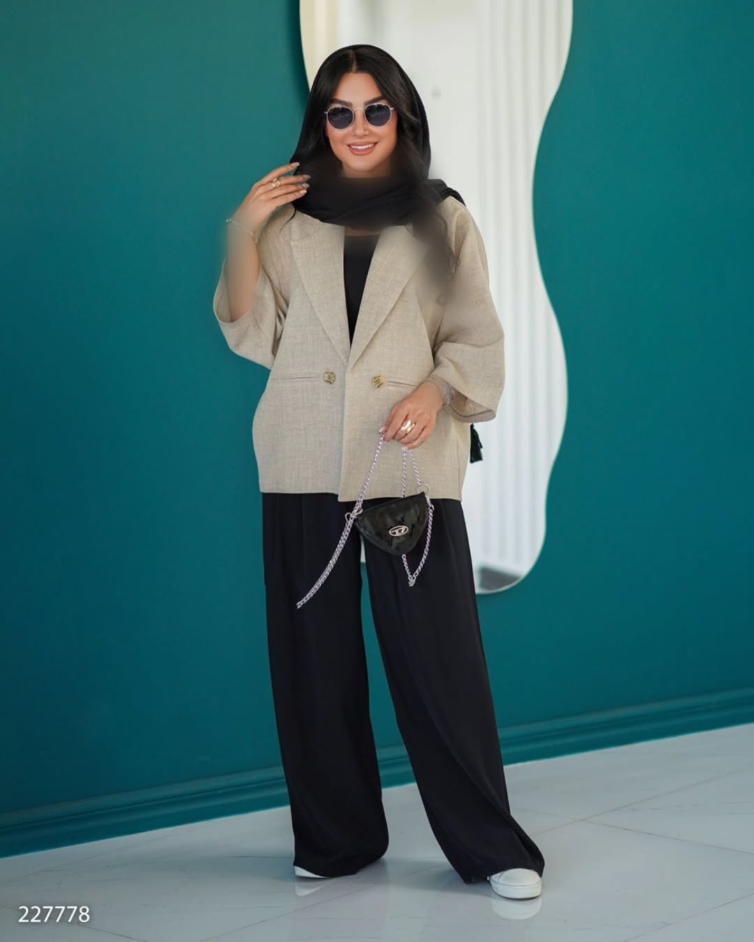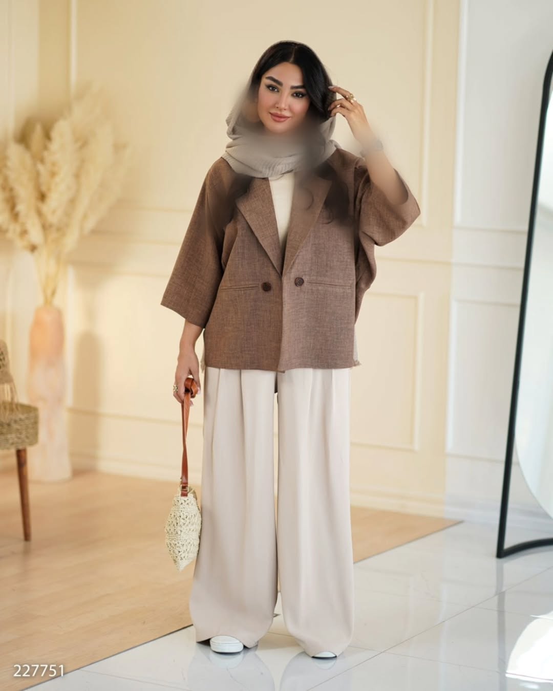 ق/ی/م/ت : ا/ر/س/ال رای/گ/ان ست شده با شلوار هوژان کت مدل هناس کد: 2277 سایز 1 مناسب: 36 تا 42 سایز 2 مناسب: 44 تا 48 دور سینه سایز 1: 124 دور سینه سایز 2: 128 جنس پارچه: شانتونمدل یقه: انگلیسیدکمه نماجیب نماقد 65