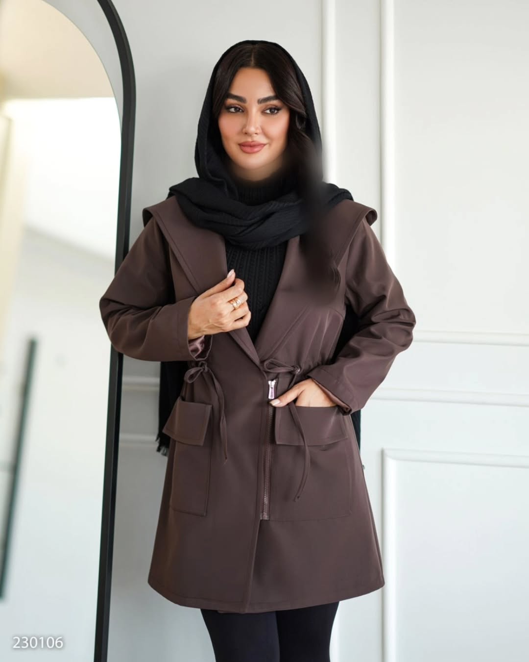 ق/ی/م/ت: ار/س/ا/ل ر/ا/ی/گ/ان بارانی مدل هیوان کد:2301 دور سینه سایز 1: 102 دور سینه سایز 2: 106 جنس پارچه:سانتانامدل یقه : آرشالکمر گتجیب کاربردیتمام استرکلاهدار جدانمیشودبسته شدن زیپ قد : 83