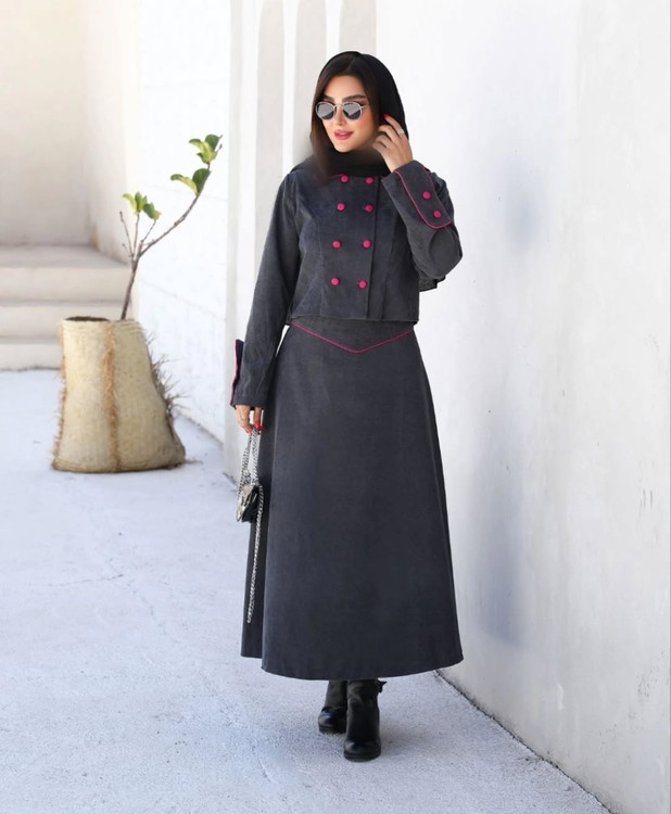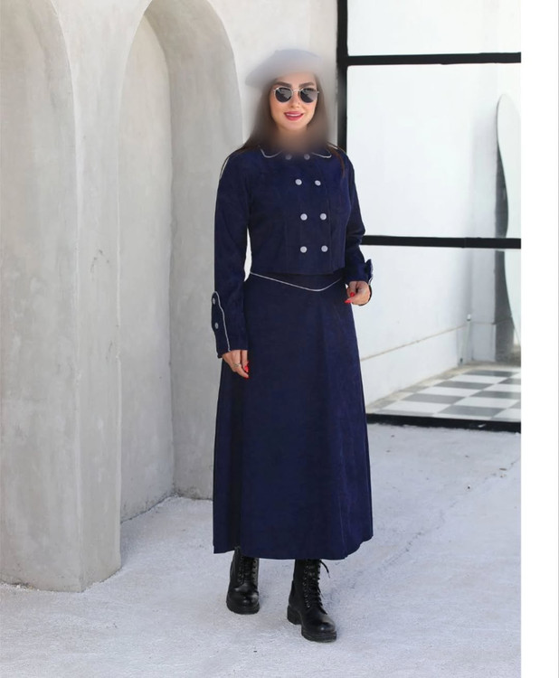 شناسه : #80153 نام : کت و دامن طرح سوزان جنس : مخمل کبریتی رنگ بندی : سورمه ای, طوسی, مشکی سایز ها : ۱(۳۸_۴۰), ۲(۴۲_۴۴), ۳(۴۶_۴۸) قیمت : 955,000 تومان دوتیکه کت و دامن. دکمه های جلو کاربردی. دامن از قسمت پشت کمر کش کار شده. قددامن:۸۵. قد کت:۴۵. قدآستین:۶۱. قسمت رنگی مغزی دوزی شده ارسال ۱۲ روز کاری