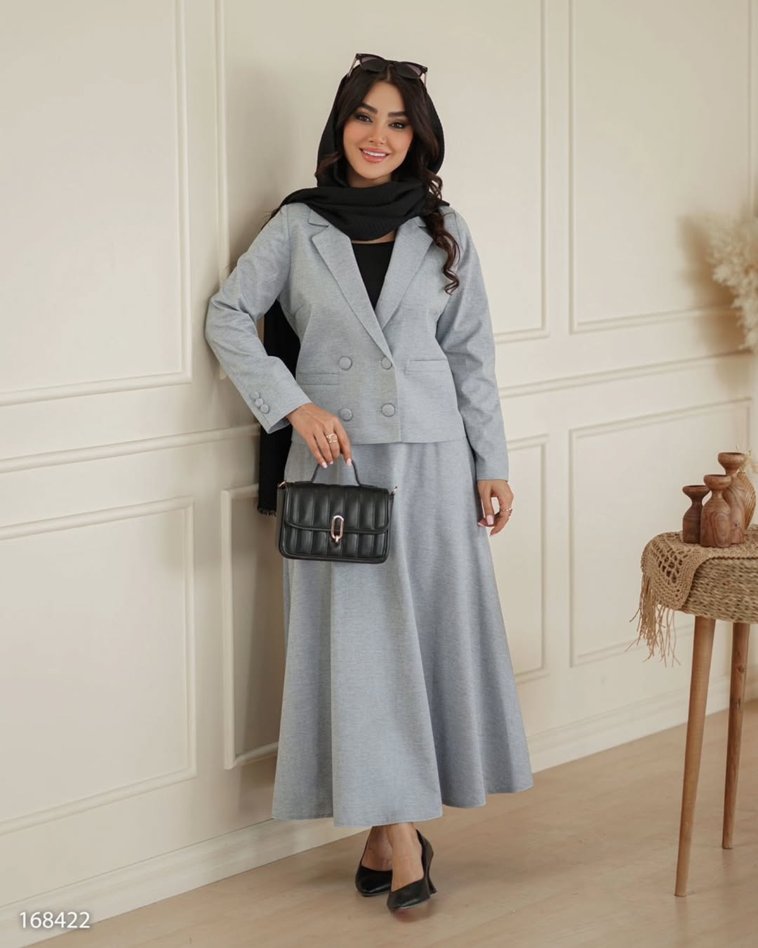 #کالکشن_پاییزه🍁 🔺کت و دامن مدل سیترا 🔺کد: 1684 🔺رنگبندی: ژورنال مناسب مجالس خصوصی 🔺سایزبندی: 1 و 2 و 3 🔺سایز 1 مناسب: 38 تا 40 🔺سایز 2 مناسب: 42 تا 44 🔺سایز3 مناسب: 46 تا 48 🏷دور سینه سایز 1: 102 🏷دور سینه سایز 2: 108 🏷دور سینه سایز 3: 114 🔸جنس پارچه: لنینت 🔸جیب نما 🔸جلو لایی 🔸4 دکمه 🔸مدل یقه: انگلیسی 🔸قد کت: 56 🔸قد دامن : 90 🔸بسته شدن دامن: زیپ 🔸دامن کلوش 🔴قیمت : 1097000 تومان 🚚ارسال رایگان