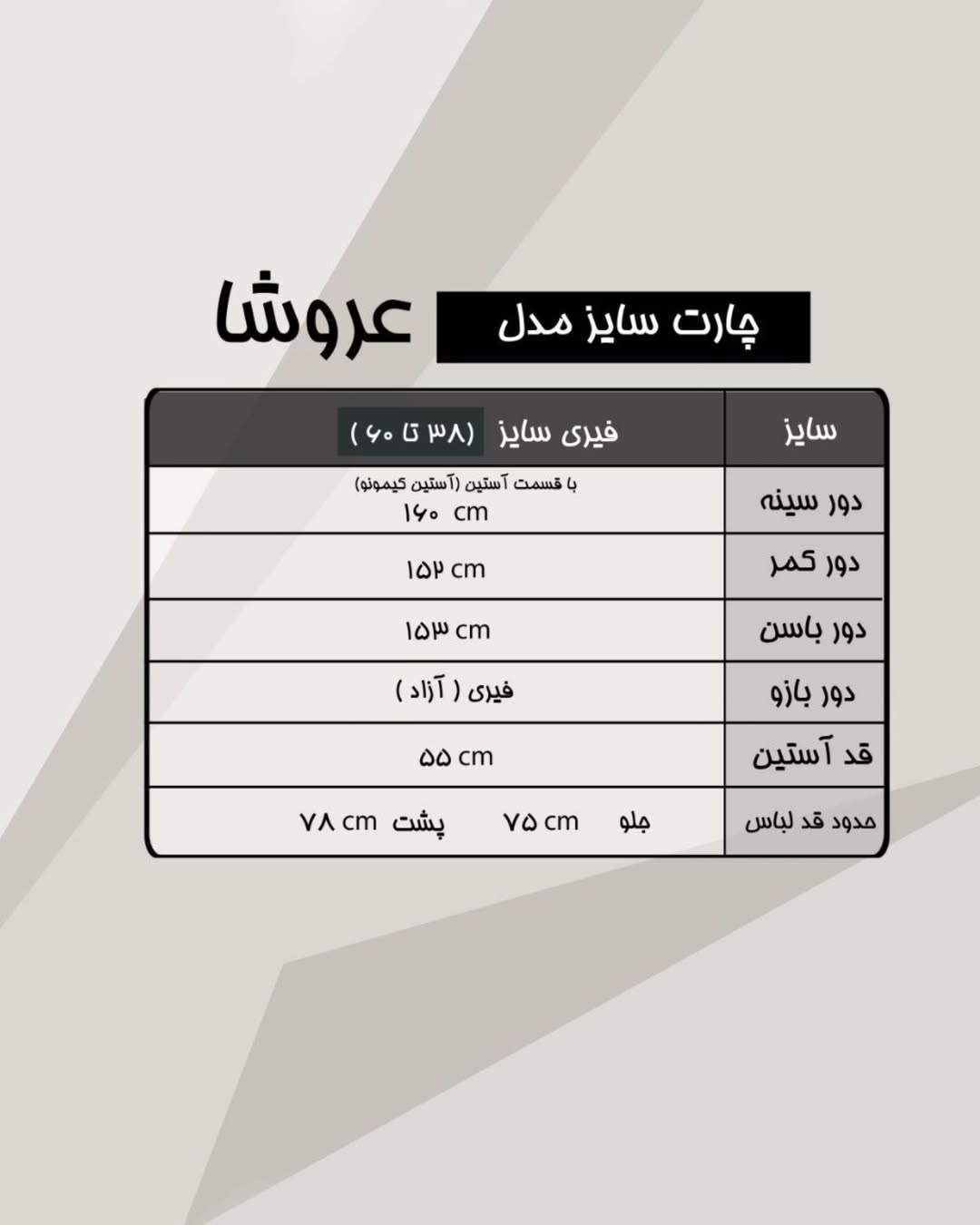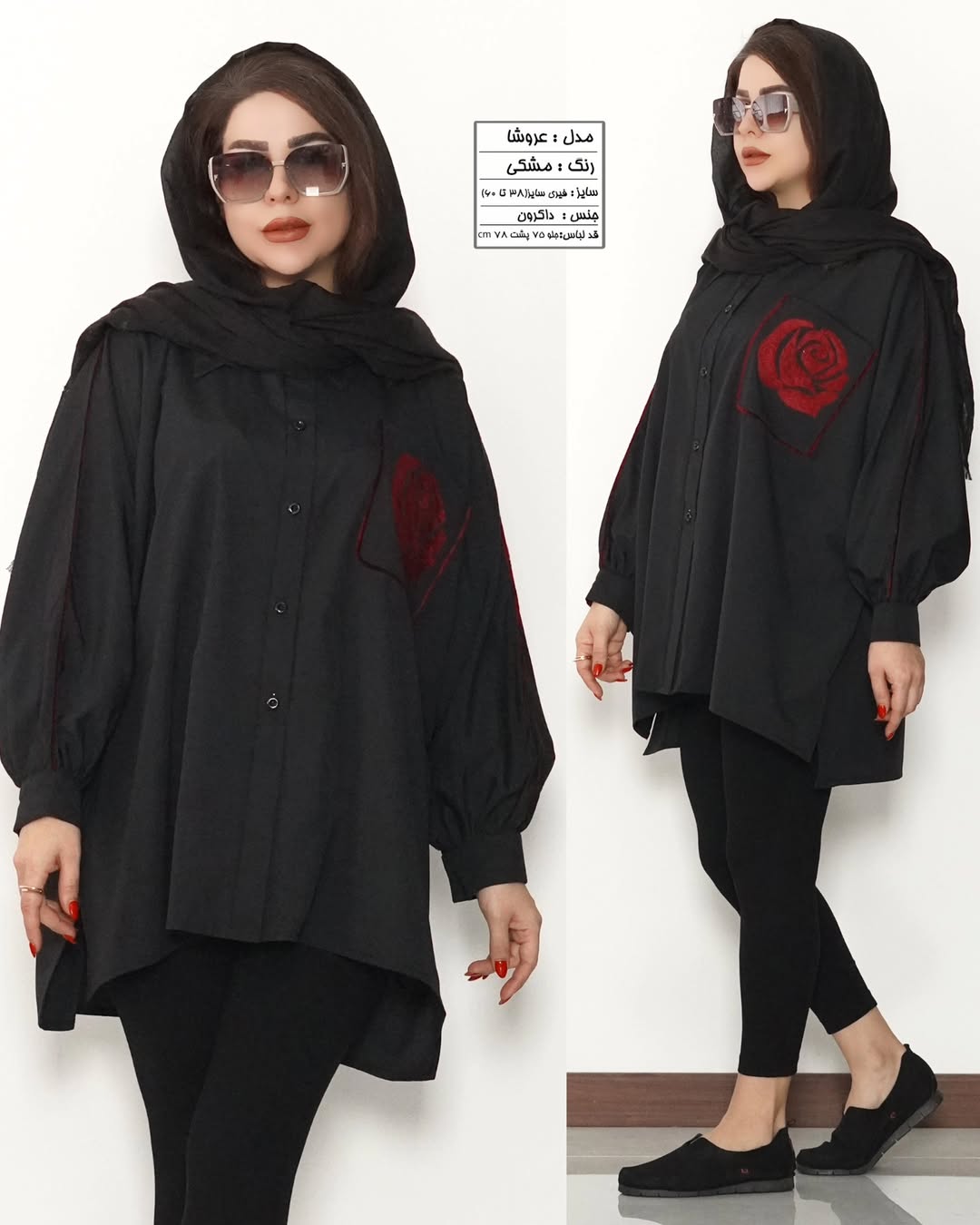 شناسه : #99367 نام : #عروشا جنس : داکرون رنگ بندی : مشکی سایز ها : فیری سایز 38 تا 60 💵قیمت : 800,000 تومان خرجکار : پارچه مخمل لیزری حدود قد : جلو 75 پشت 78 جلوی لباس و مچی دکمه دارد جیب کاربردی