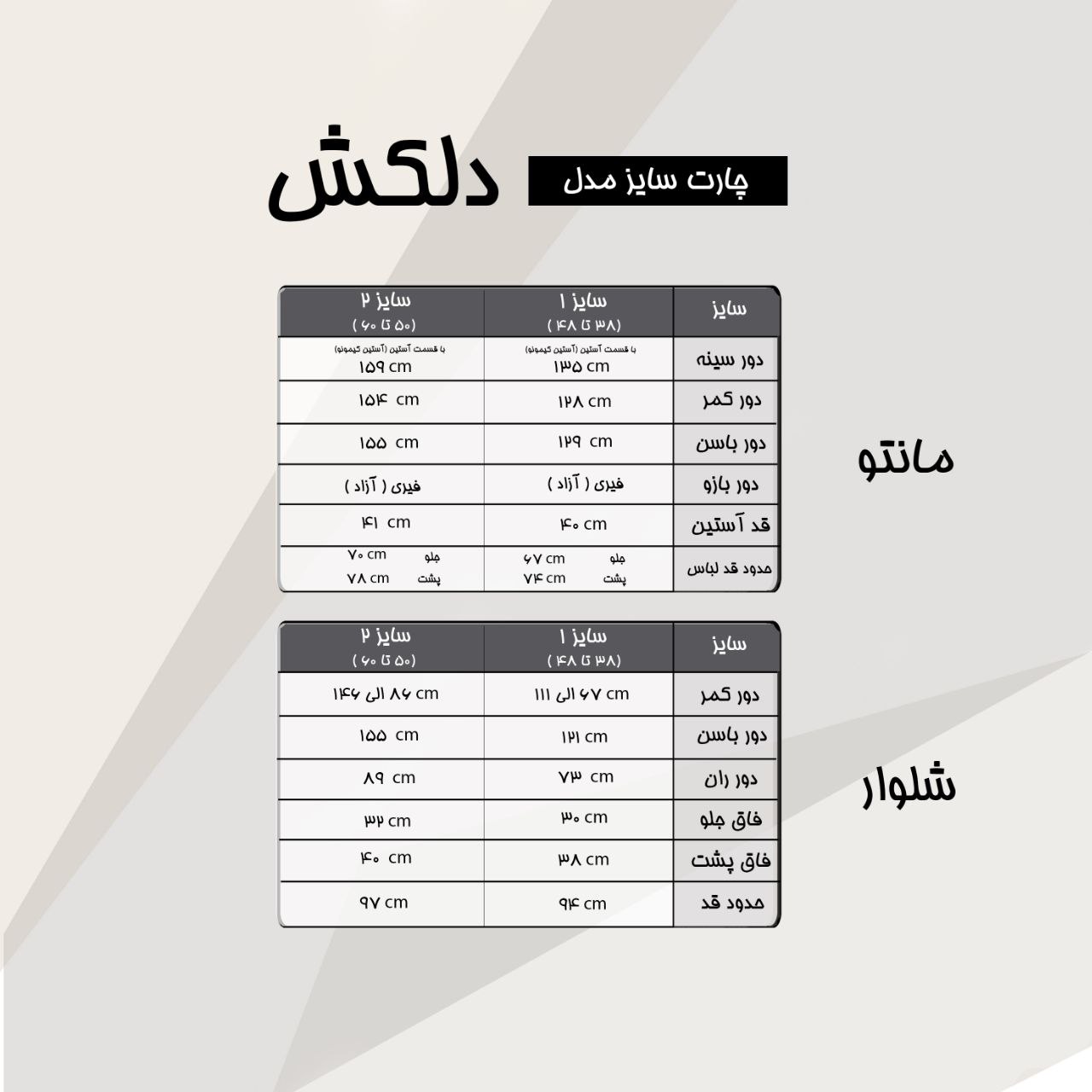 حدود قد : شلوار 94 الی 97 مانتو 67/74 الی 70/78