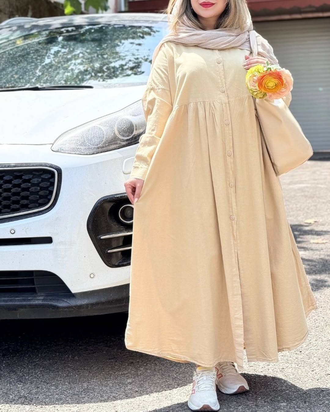 🆔 شناسه : #33 👚نام : مانتو بلند برکه 👗سایز 38 تا 50 قد حدود 130 دور سینه حدود 136 دور کمر حدود 128 دور بازو حدود 45 بدون آبرفت 🧵جنس : الیاف لینن طبیعی 100 درصد پنبه ای آنزیم شور شده بسیار لطیف و خنک 🖌 رنگ بندی : کرم - مشکی - آدامسی - طوسی - سورمه ای - یشمی - نسکافه ای - ⚜️ سایز ها : فری سایز - 💰 قیمت : 950,000 تومان