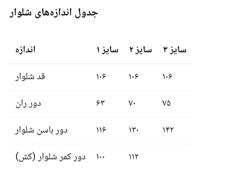 سایز یک دور کمر شلوار با کش۱۰۰